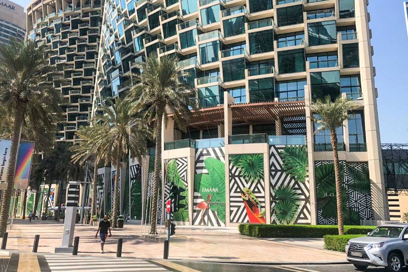 Burj Vista Tower 1 is notable for its honeycomb-patterned façade engineered by Koltay Facades, which adds a distinct architectural character to Dubai’s skyline.