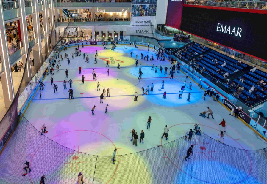 Dubai Ice Rink is an Olympic-sized indoor ice skating rink located on the ground floor of The Dubai Mall, one of the world’s largest shopping and entertainment destinations. Opened in November 2008, it has become a popular leisure and social hub in Dubai, attracting visitors of all ages and skill levels.