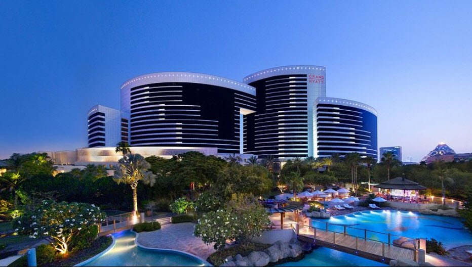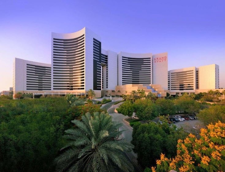 Grand Hyatt Dubai is a luxury five-star hotel located in the Bur Dubai district of Dubai, United Arab Emirates. It officially opened on March 16, 2003, and is managed by Hyatt Hotels Corporation. Nestled within 37 acres of lush landscaped gardens near Dubai Healthcare City and Dubai Creek, the hotel is renowned for its extensive resort-style facilities and panoramic views of the city skyline and historic creek.