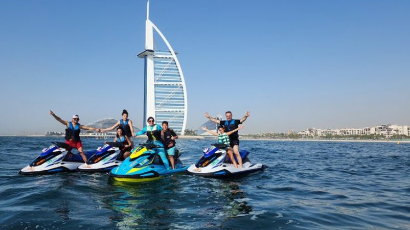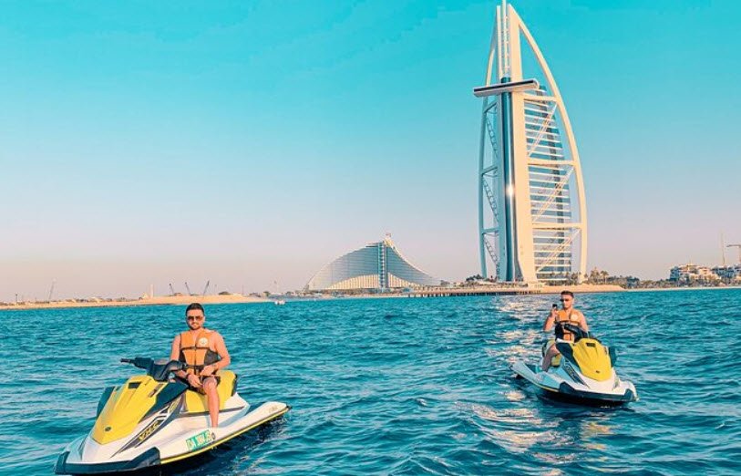 Jet-skiing in Dubai is a popular water sport activity enjoyed along its extensive coastline, particularly at locations such as Jumeirah Beach Residence (JBR), Umm Suqeim, Dubai Marina, and near the iconic Burj Al Arab.