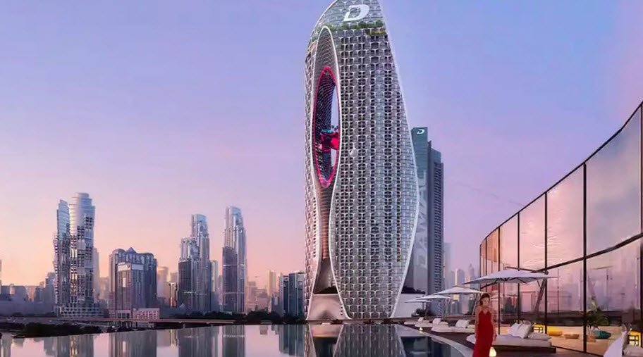 The building’s standout features include a floating sapphire infinity pool with transparent edges, an indoor fog forest, an observatory with panoramic city views, a glass slide, a spa, gymnasium, artificial beach, and a unique edge walk experience.