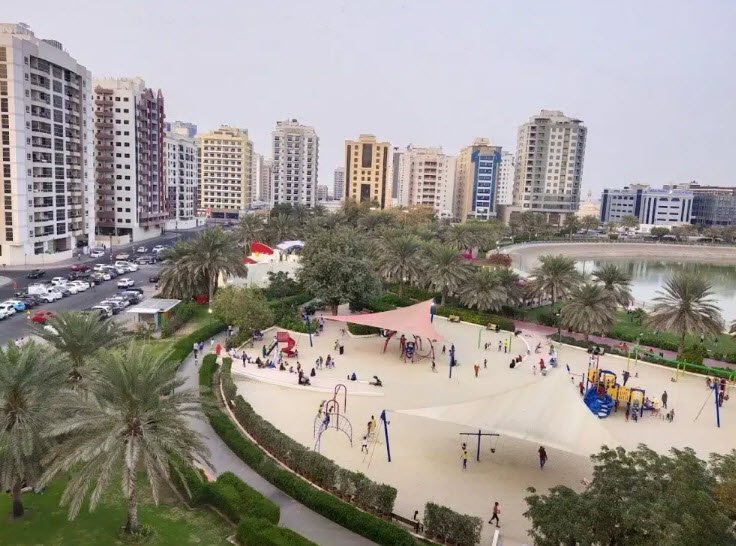 Al Nahda Pond Park is a serene urban park located in the Al Nahda area of Dubai, offering a green oasis amid the city's bustling urban environment. Opened in 2015, the park spans over 16,000 square meters and features a central pond covering approximately 2,500 square meters, surrounded by lush lawns, walking paths, and a variety of trees such as neem and date palms.