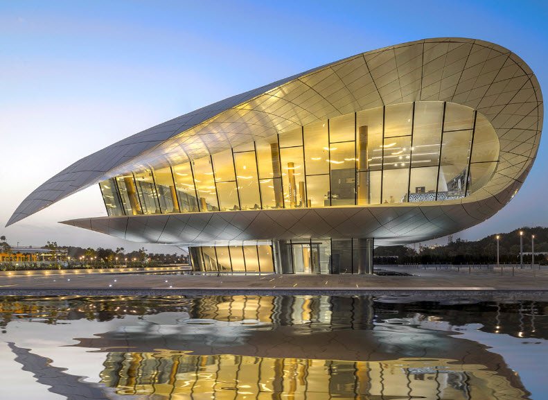 The museum’s architecture is inspired by the shape of a manuscript, with seven columns symbolizing the pens used to sign the original declaration of the federation.