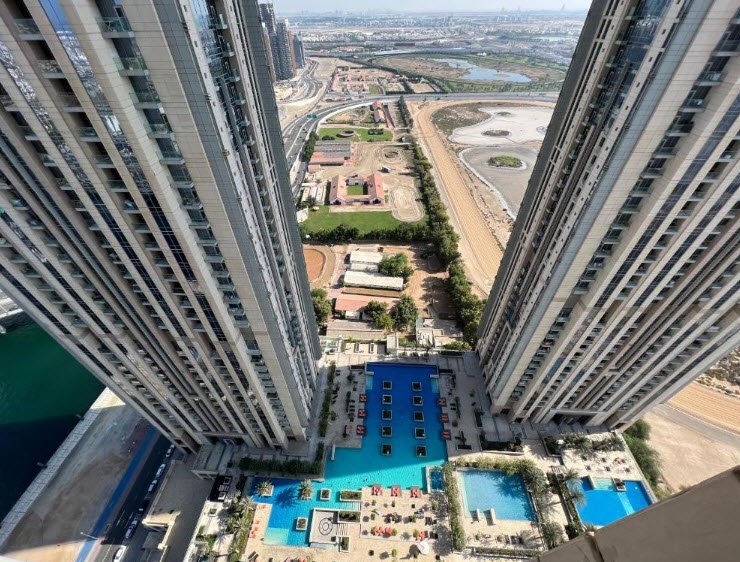 The penthouses are among the largest in Dubai, with some boasting private pools, jacuzzis, private gyms, and multiple master suites, arranged over multiple floors to provide a palatial living experience.