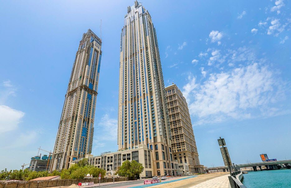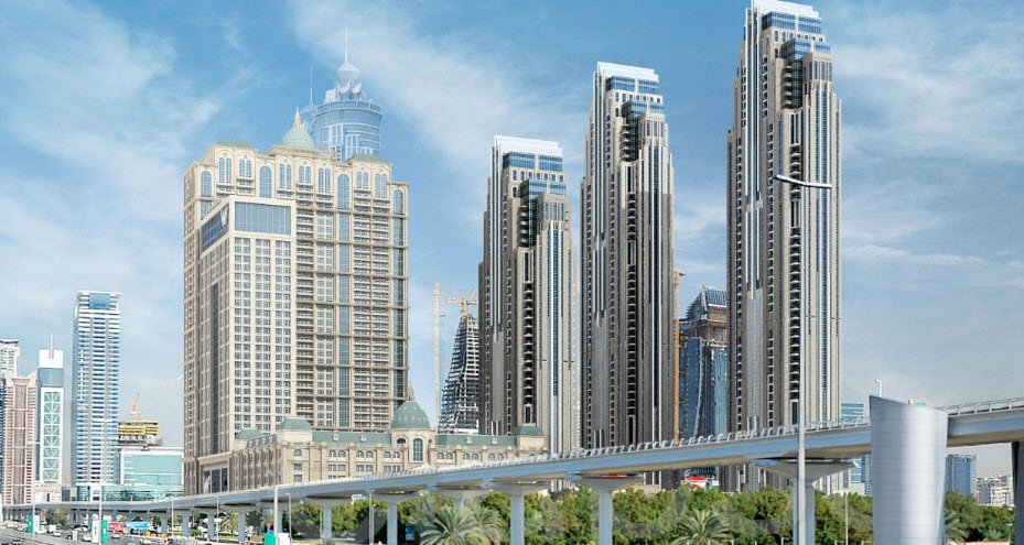 Designed to offer ultra-luxurious urban living, the apartments feature marble flooring, built-in wardrobes, fitted kitchens with wooden cabinets and ceramic countertops, and large balconies or terraces providing stunning views of the Dubai skyline and Dubai Water Canal.