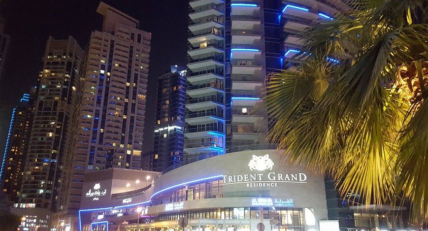 Trident Grand Residence is a high-rise residential building located in Dubai Marina, one of Dubai's most sought-after neighborhoods known for its skyscrapers, upscale dining, and leisure options. Developed by Trident International Holdings and designed by architect Hazel Wong, the tower was completed in 2010 and stands 45 stories tall.