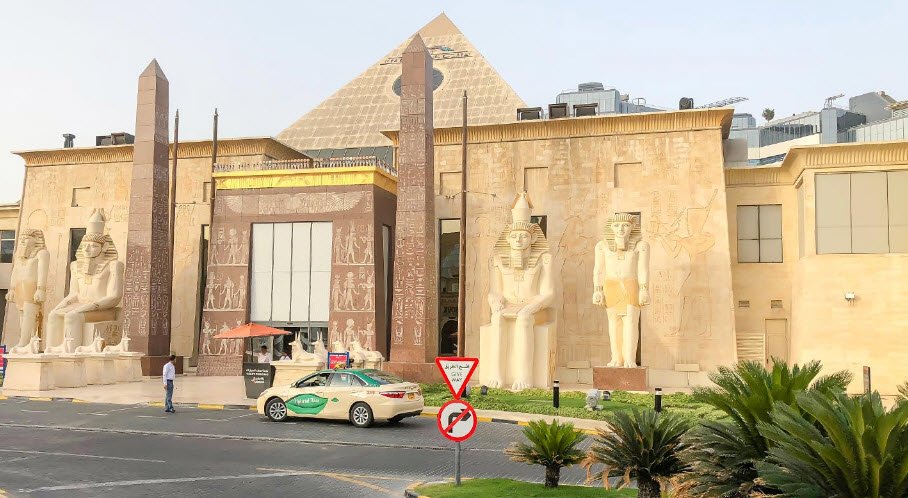 Wafi Mall is part of a mixed-use development that includes two five-star hotels—Raffles Dubai, shaped like a pyramid, and Sofitel Dubai The Obelisk, designed as an obelisk—as well as restaurants, residences, a nightclub, spas, and wellness centers such as Cleopatra's Spa.